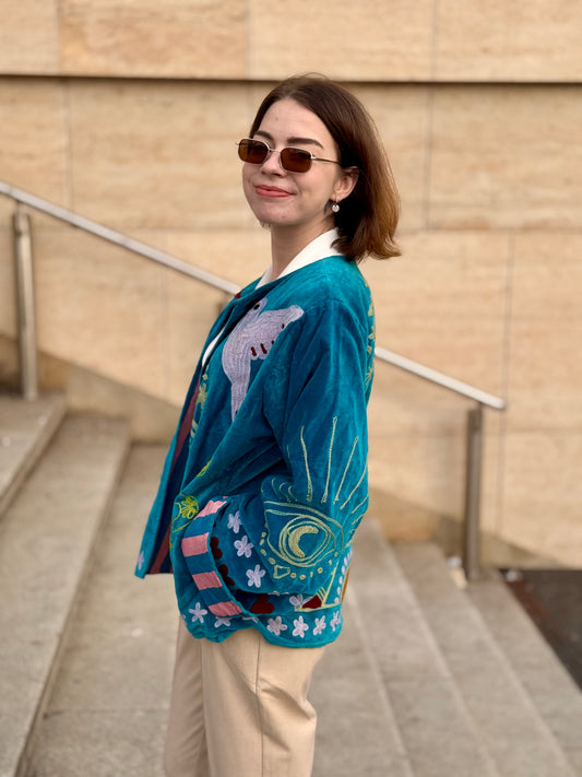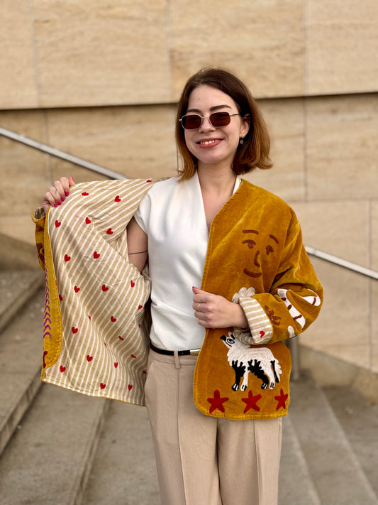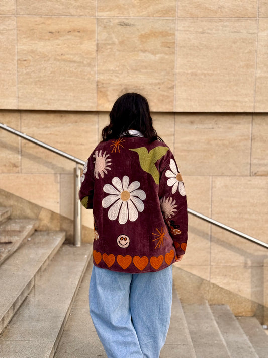 Bunda Suzanni Velvet Dark Purple&Pink Stripes