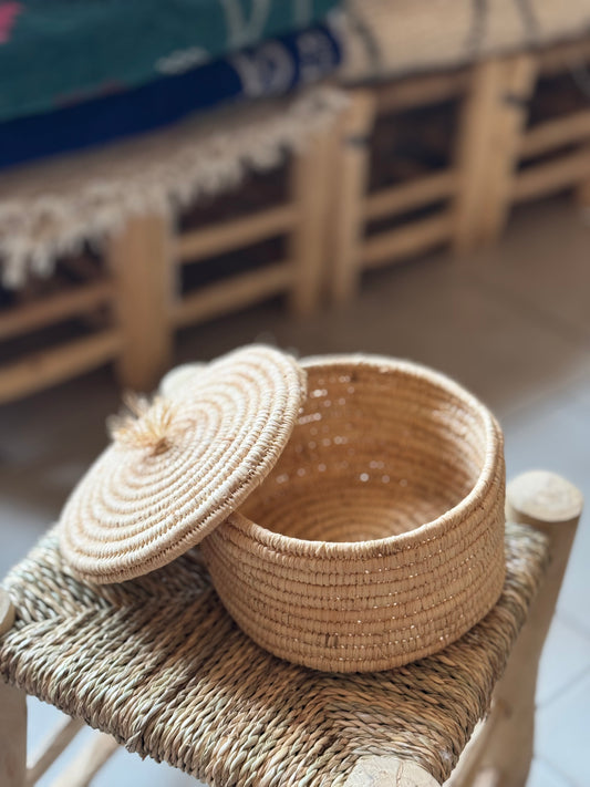 Košík s víkem Rafia