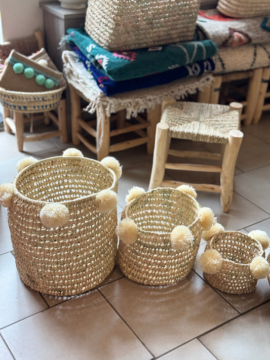 Set 3 košíků s bambulkami