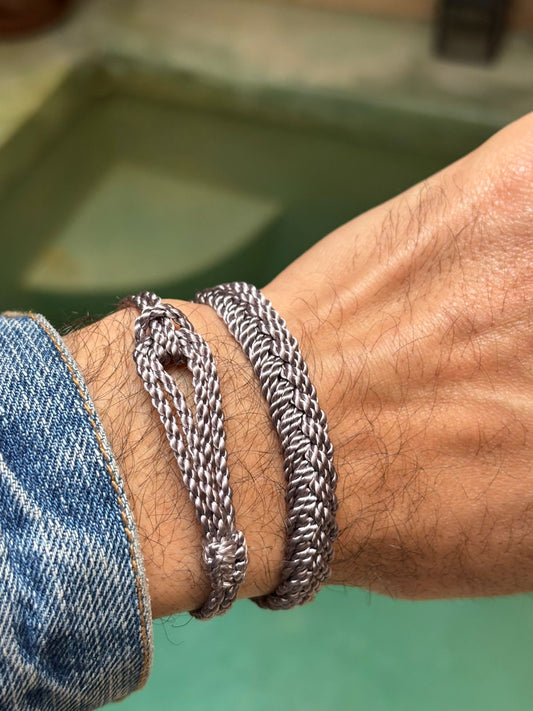 Náramek pánský hedvábný světle šedý