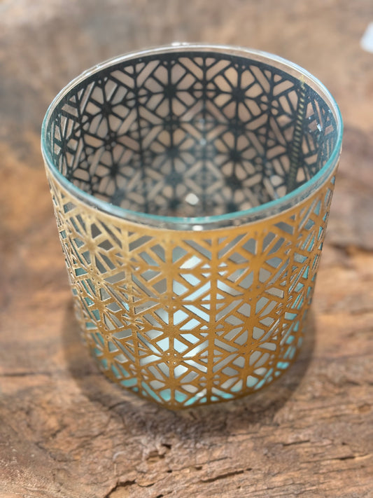 Svícen recyklované sklo+kůže vysoký zlatá Maroko