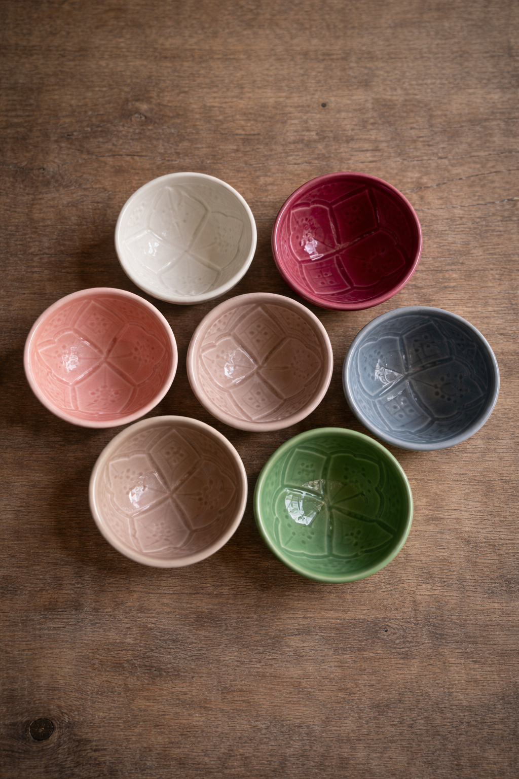 Keramická mistička o průměru 7 cm, ideální na drobnosti všeho druhu – oříšky, omáčky, citrony k čaji nebo třeba oblíbené šperky.