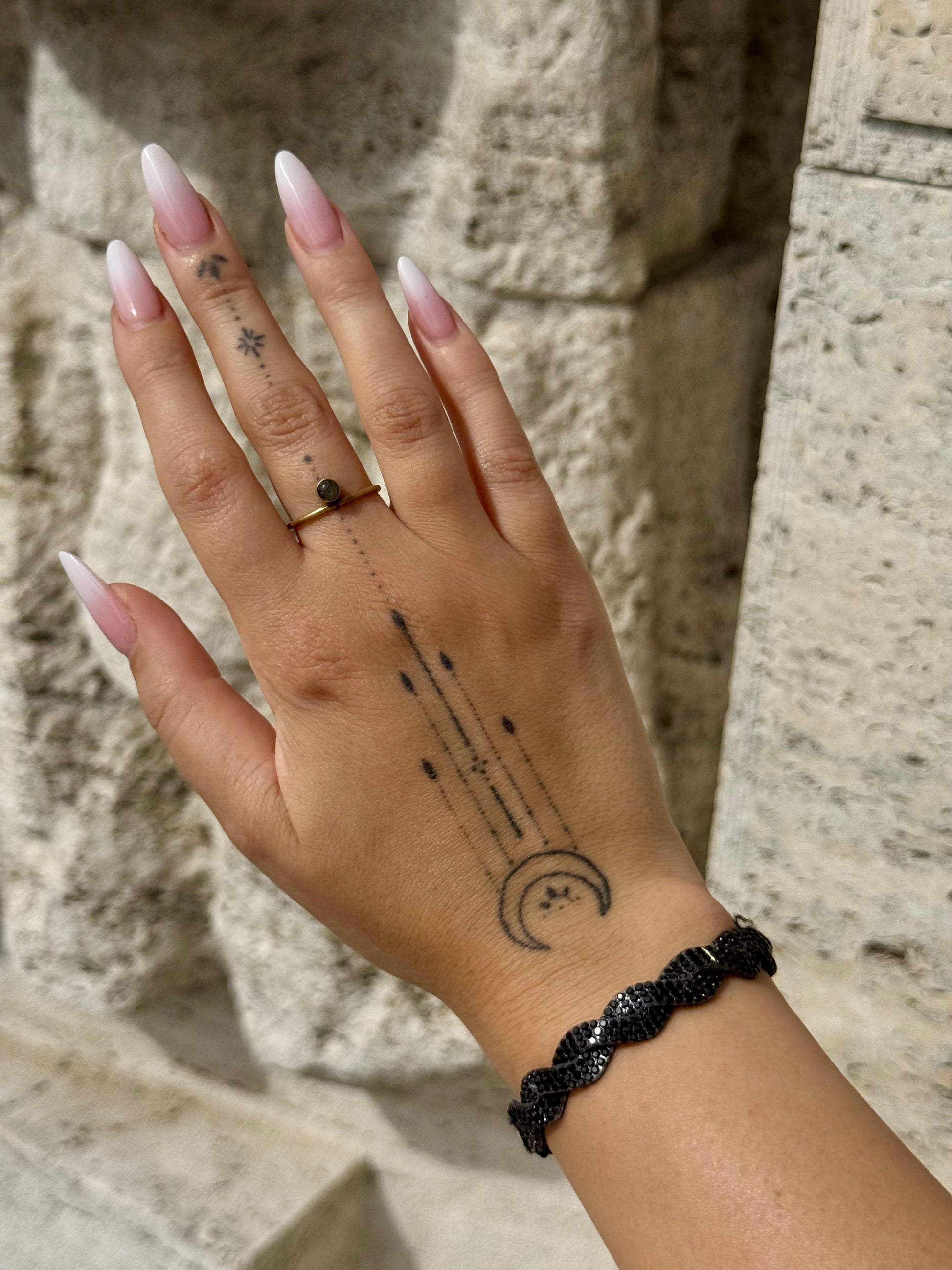 Ručně vyráběný náramek z měkkého černého sametu, spletený do jemného copu a posetý drobnými černými flitry, které dodávají decentní třpyt. Náramek je lehký, pohodlný a stylový, vhodný jak pro denní nošení, tak jako minimalistický doplněk k večerním outfitům.