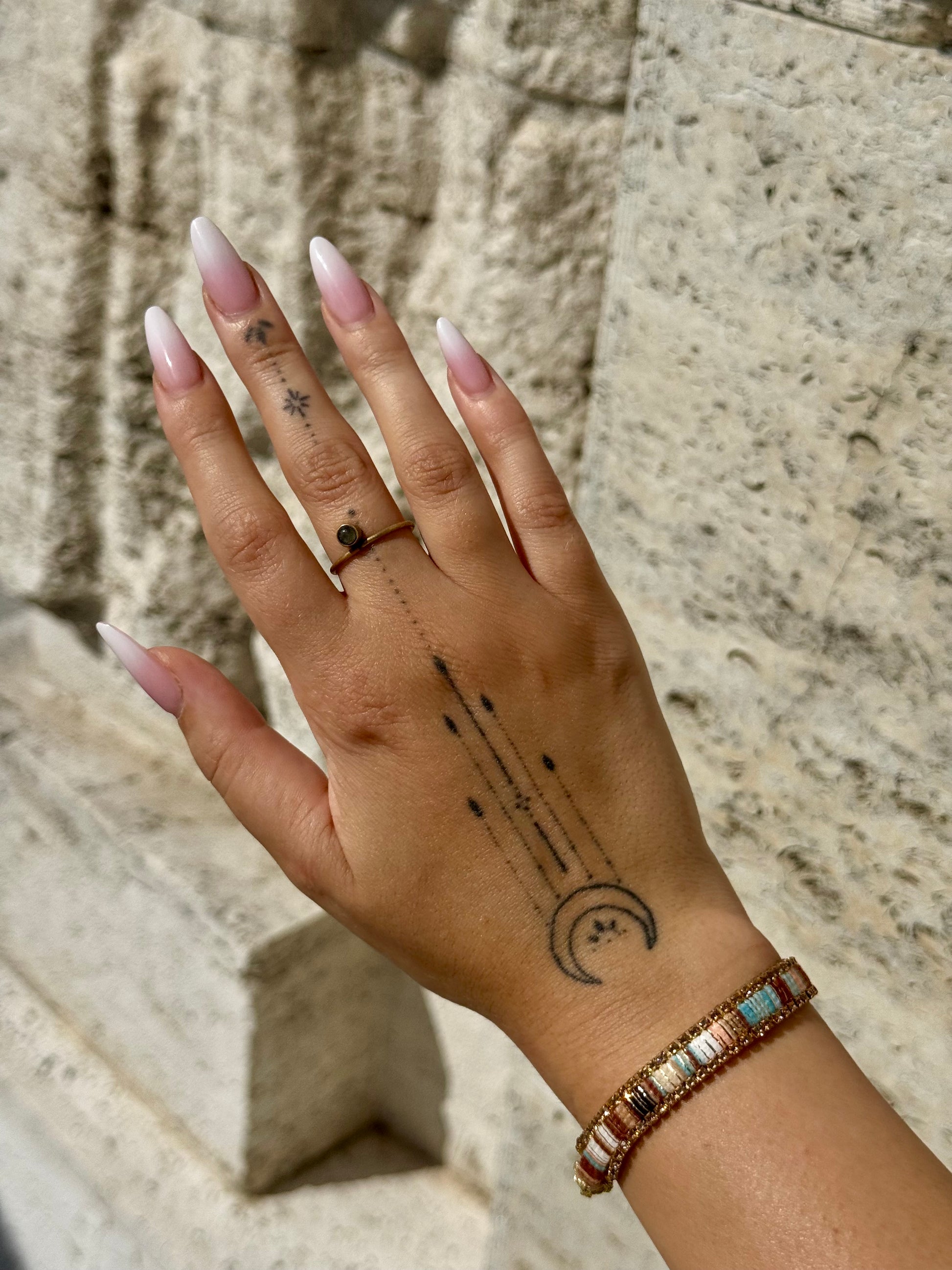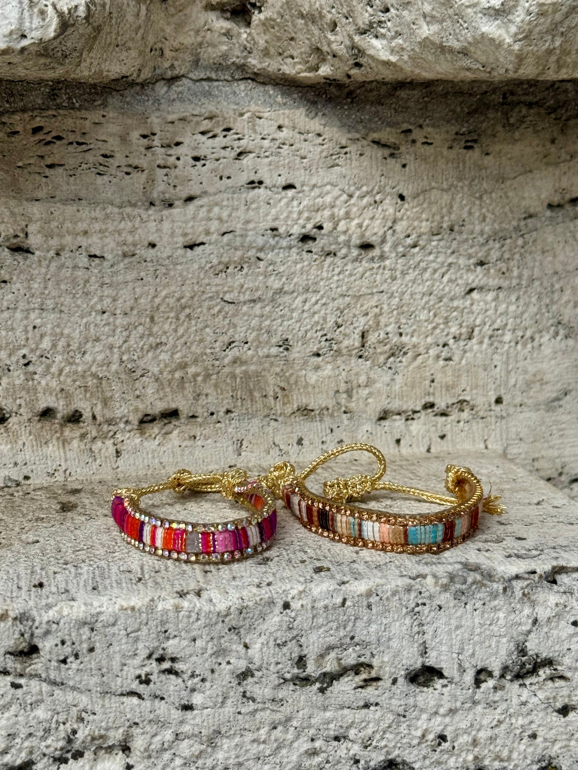 Stylový náramek s pevnou konstrukcí z gumového podkladu, do kterého jsou pečlivě vsazeny barevné kamínky v jemných i kontrastních odstínech. Každý detail je propracovaný ručně, s důrazem na kvalitu a estetiku.