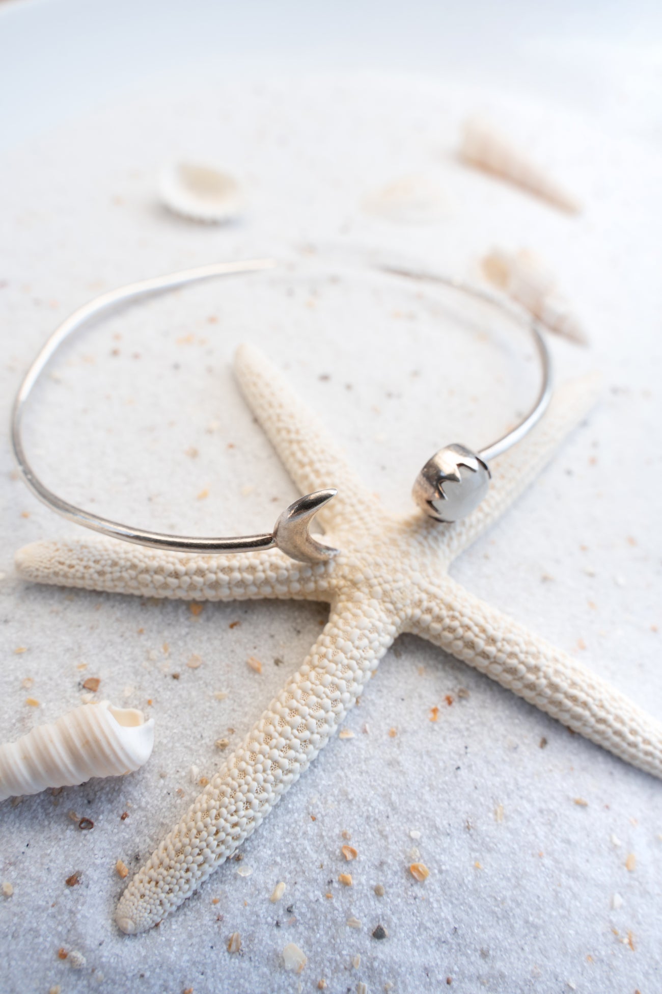 Elegantní, jemný a nadčasový. Moon Bangle – Silver White je jako kousek měsíčního světla, který rozzáří každý váš den.