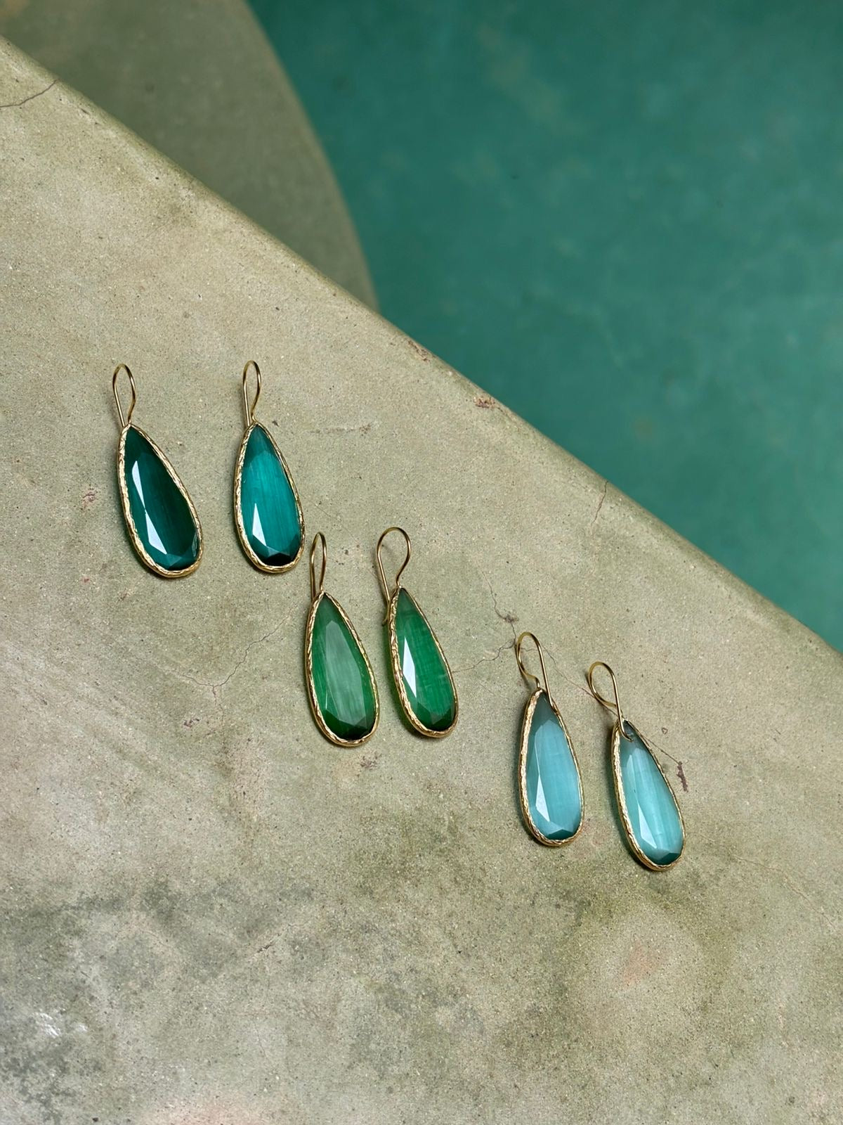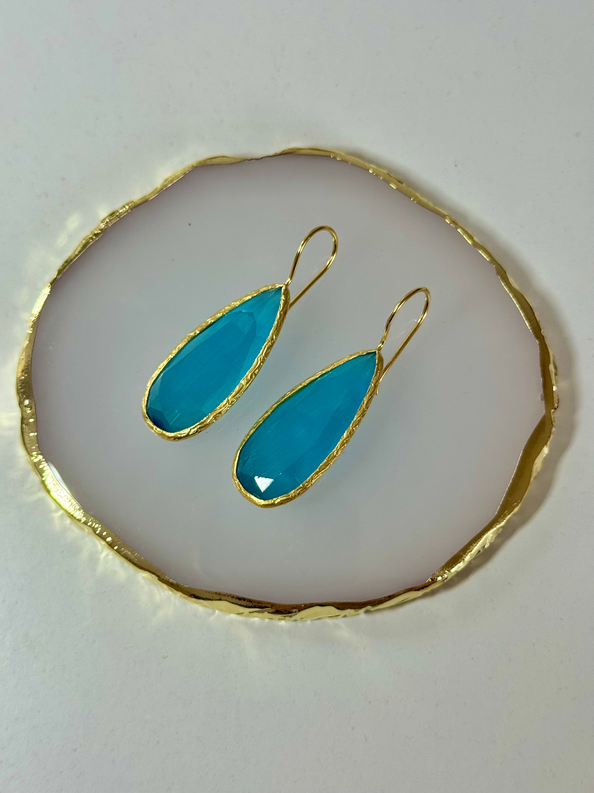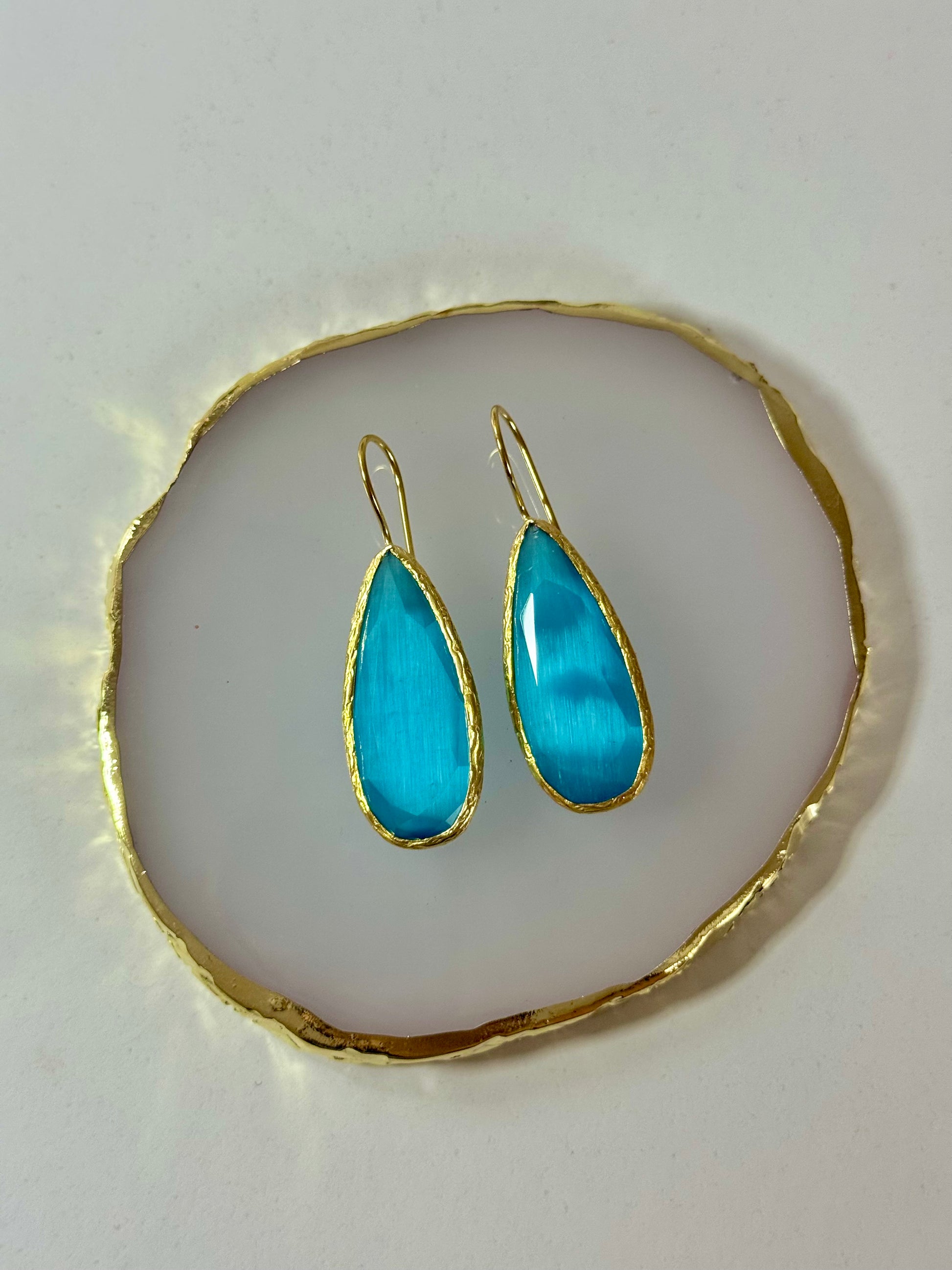 Něžné jako mořská hladina za svítání, ale s energií, která tě nenechá přehlédnout. Kapkovité náušnice v zářivé tyrkysové barvě připomínají svobodu, dálky a dovolenou, kterou nosíš s sebou každý den. Skvěle ladí jak k bílému lnu, tak k džínové bundě.