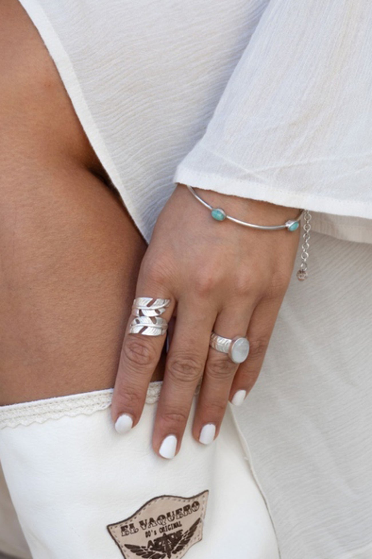 Chcete doplněk, který dodá vašemu stylu decentní šmrnc a jemnost? Bangle Bracelet Dots – Silver Blue je křehký, a přesto plný charakteru — šperk jako dotek světla na zápěstí.