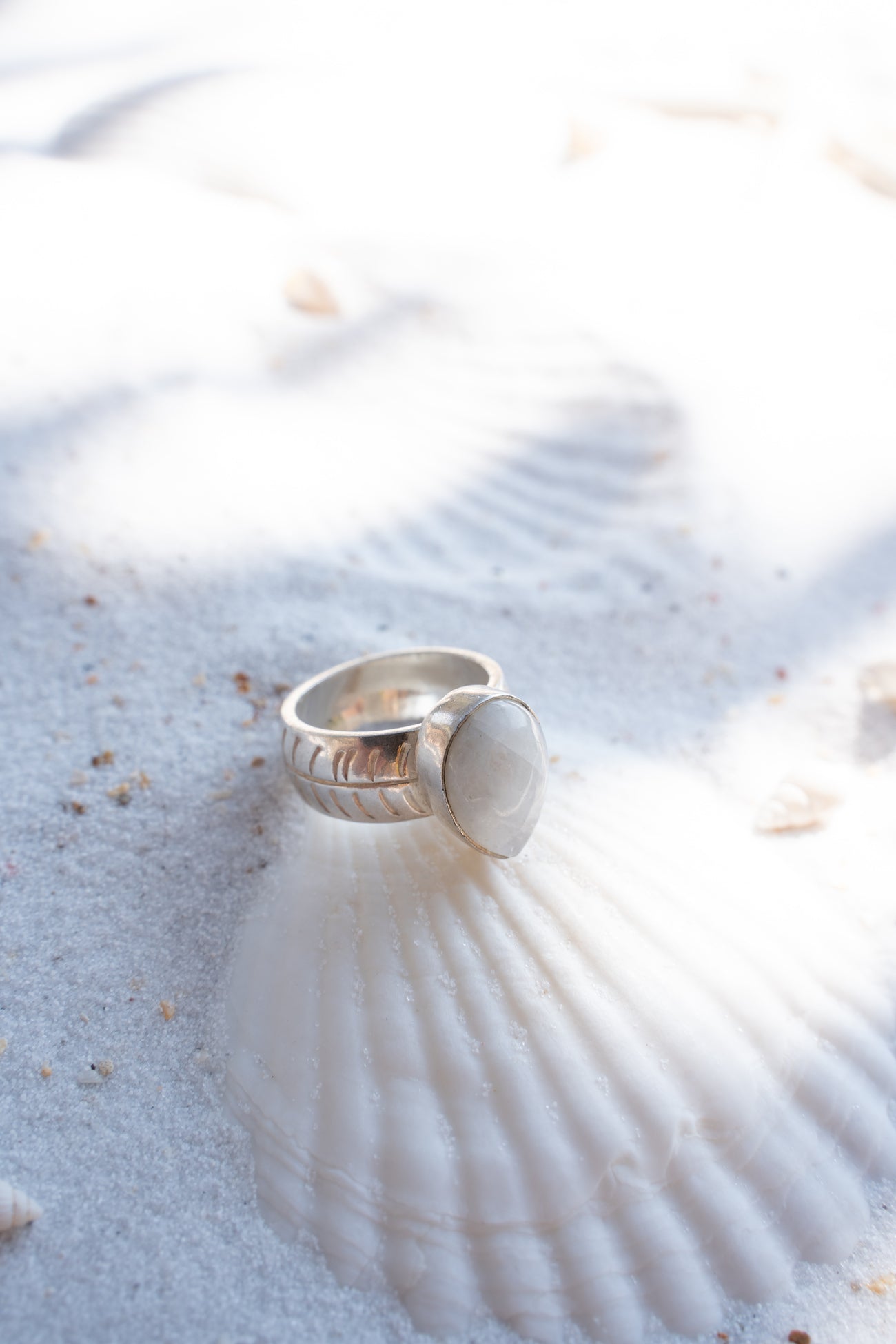 uprostřed září měsíční kámen, který se jemně mění podle světla a připomíná magii noční oblohy,