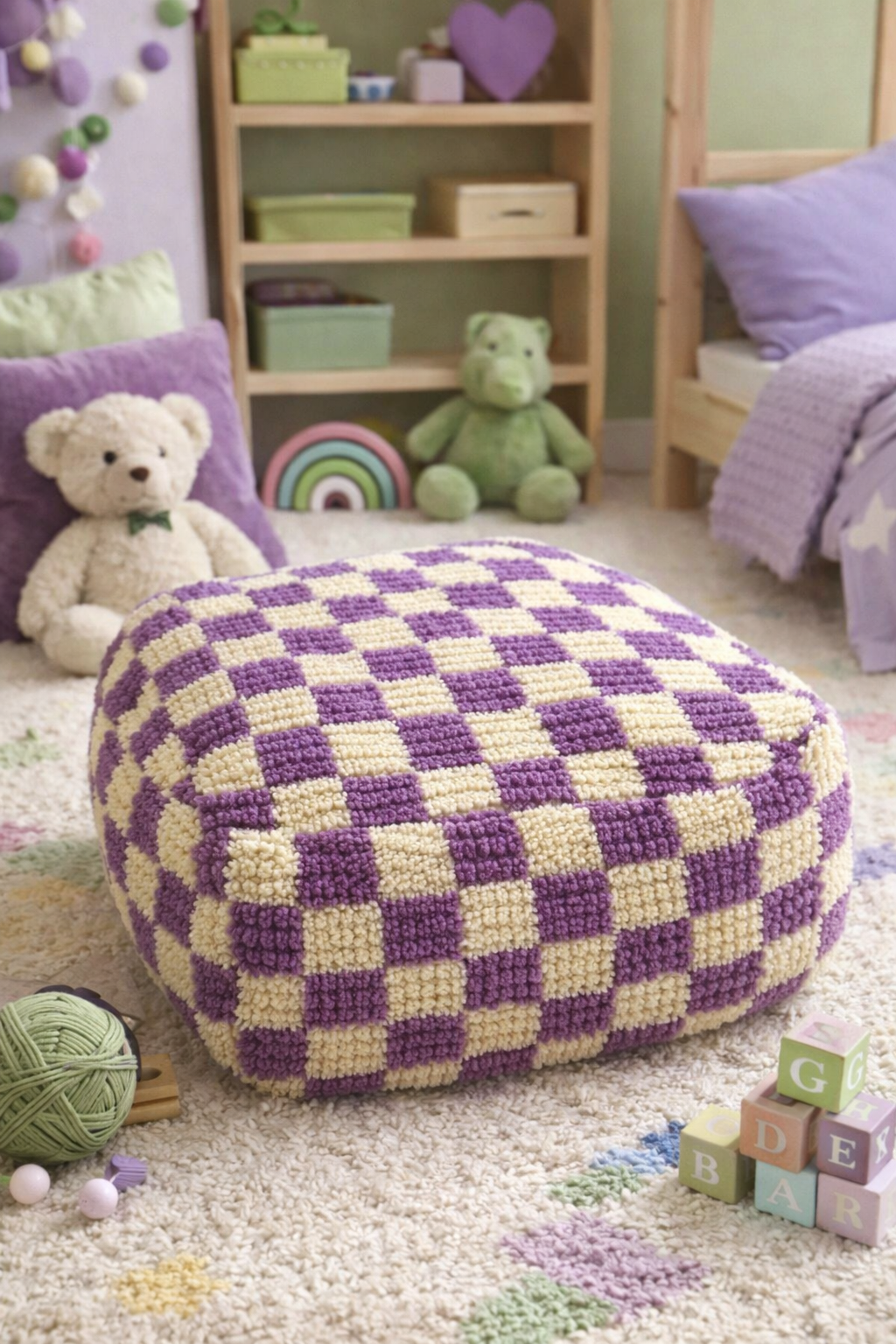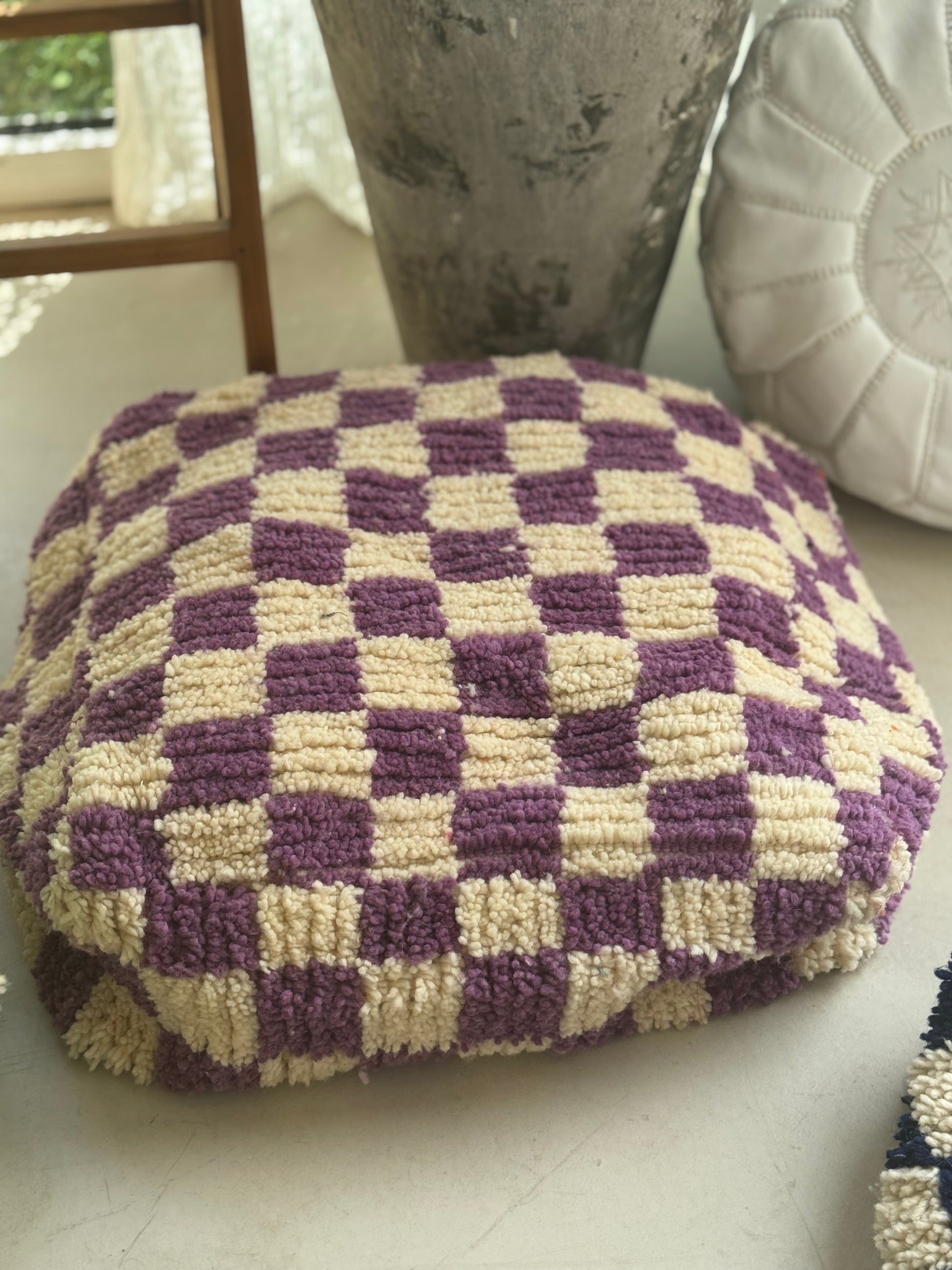 Přineste do svého interiéru útulnost a hravost s tímto originálním sedacím pufem v nadčasovém kostkovaném vzoru. Každý kus je ručně vyroben z kvalitního koberce z ovčí vlny, technikou ručního vázání, která zajišťuje nejen krásný vzhled, ale i dlouhou životnost a měkký, příjemný povrch.