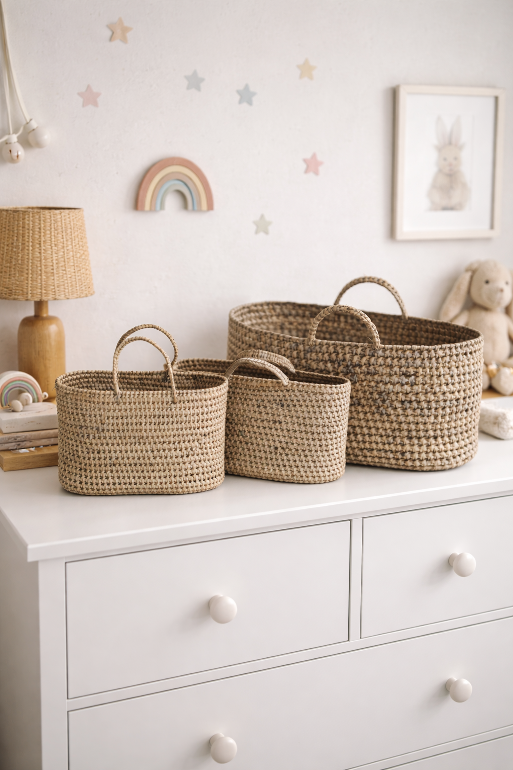 Košíky jsou určeny pro suché skladování a dekoraci, nejsou vhodné pro přímý kontakt s vodou.