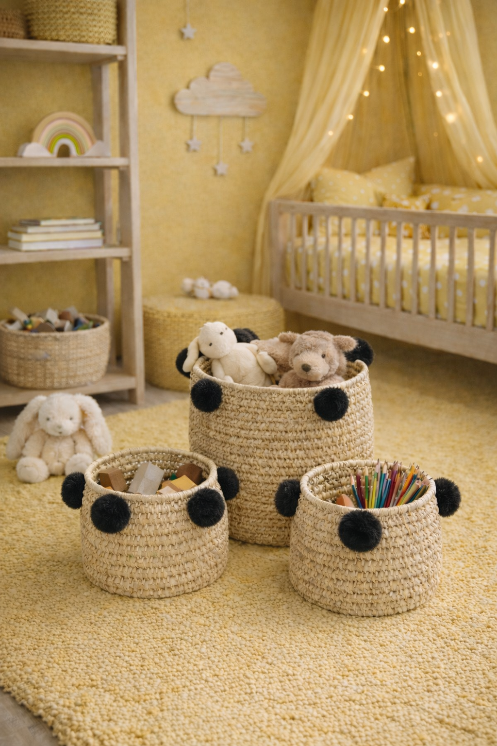 Set 3 košíků s bambulkami