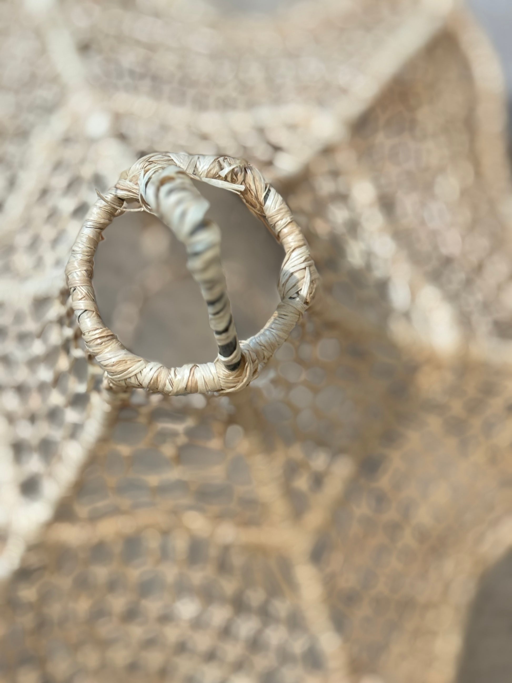 Ručně háčkované z přírodní rafie a jemně tvarované tak, aby i žárovka dostala špetku poezie.