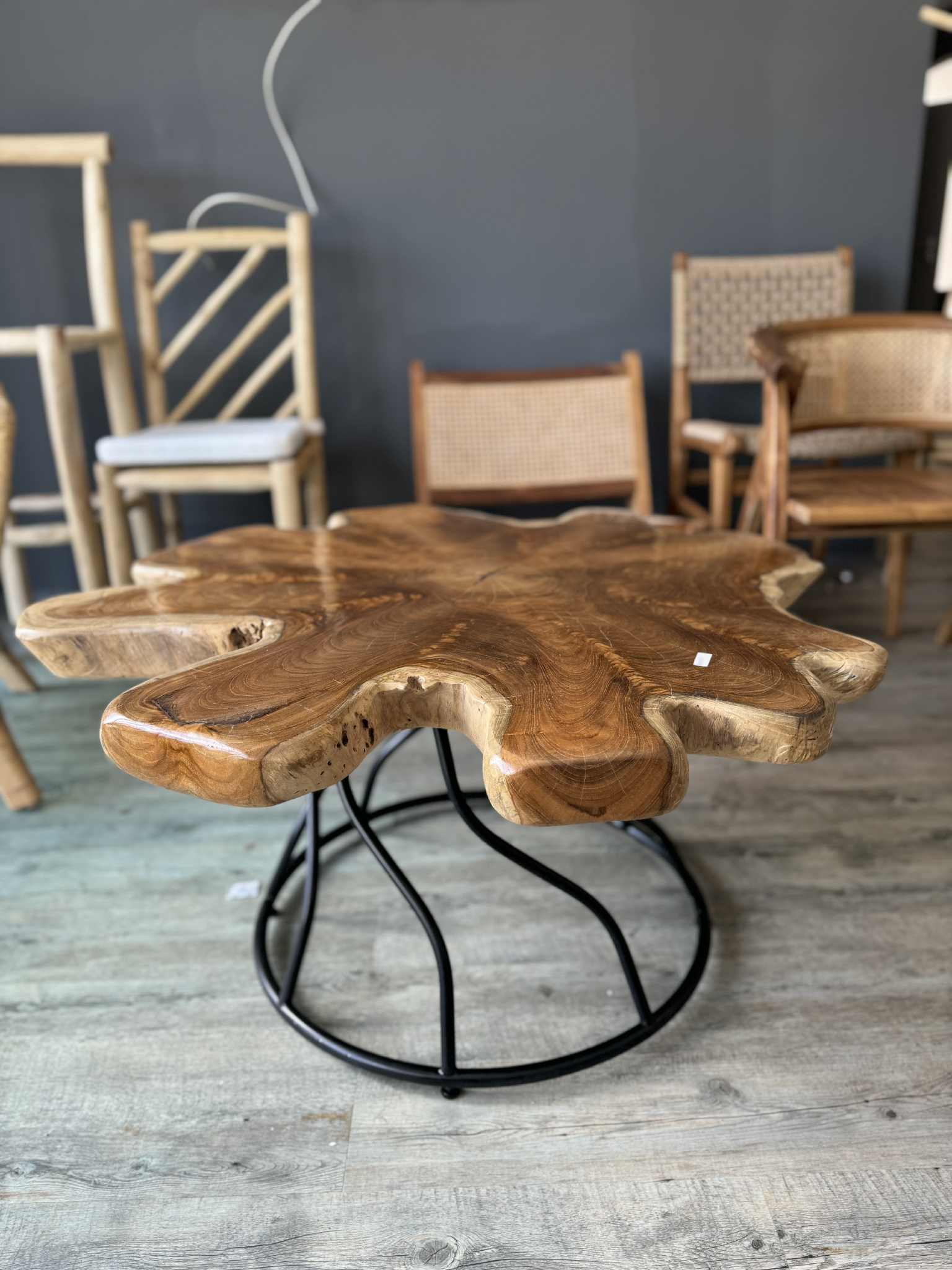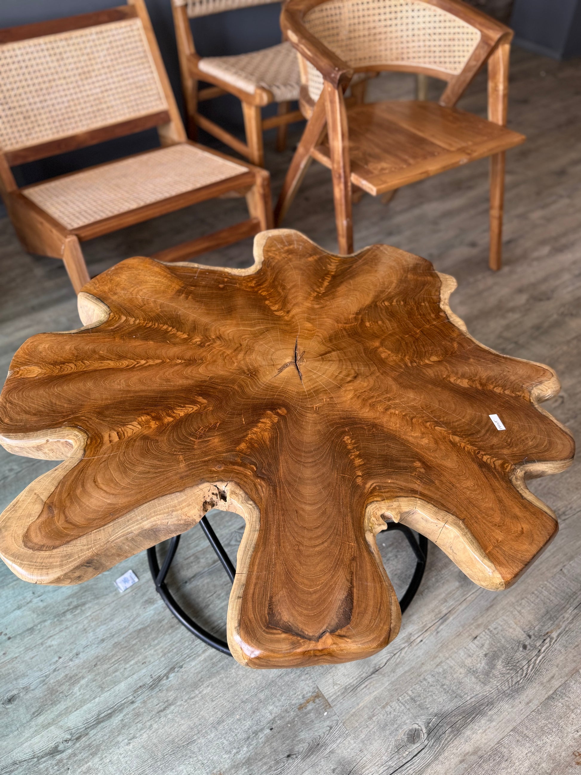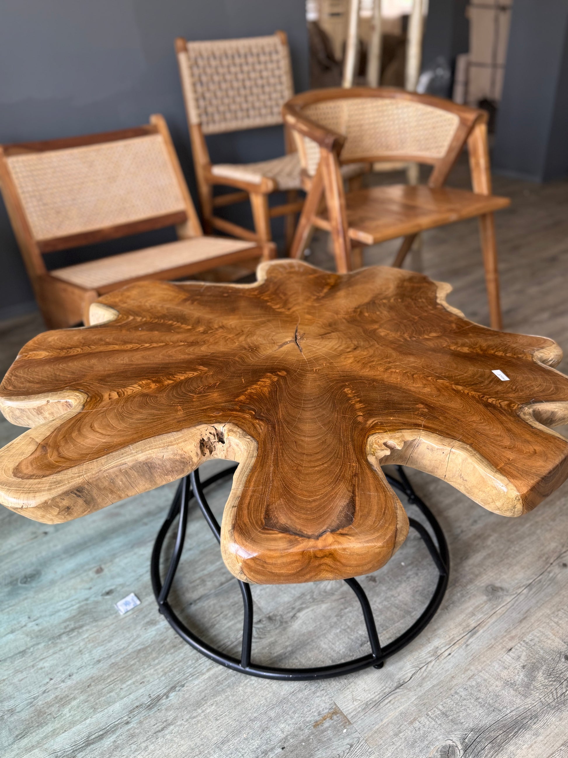 Unikátní designový stůl z masivního teakového dřeva zaujme svým přírodním tvarem a výraznou kresbou dřeva. Každý kus je originál, vyrobený z jednoho kusu kořene stromu, což zaručuje jedinečný vzhled a pevnost.