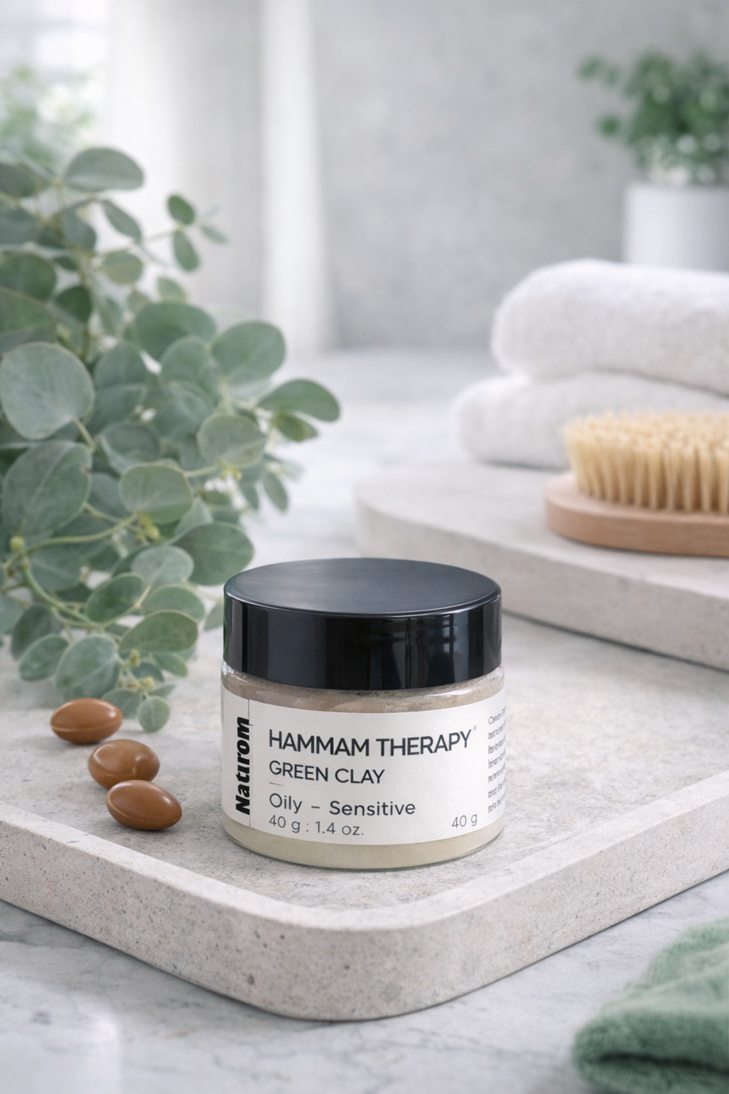 Přírodní zelený jíl Montmorillonit intenzivně absorbuje přebytečný maz, odstraňuje nečistoty a podporuje regeneraci pleti.