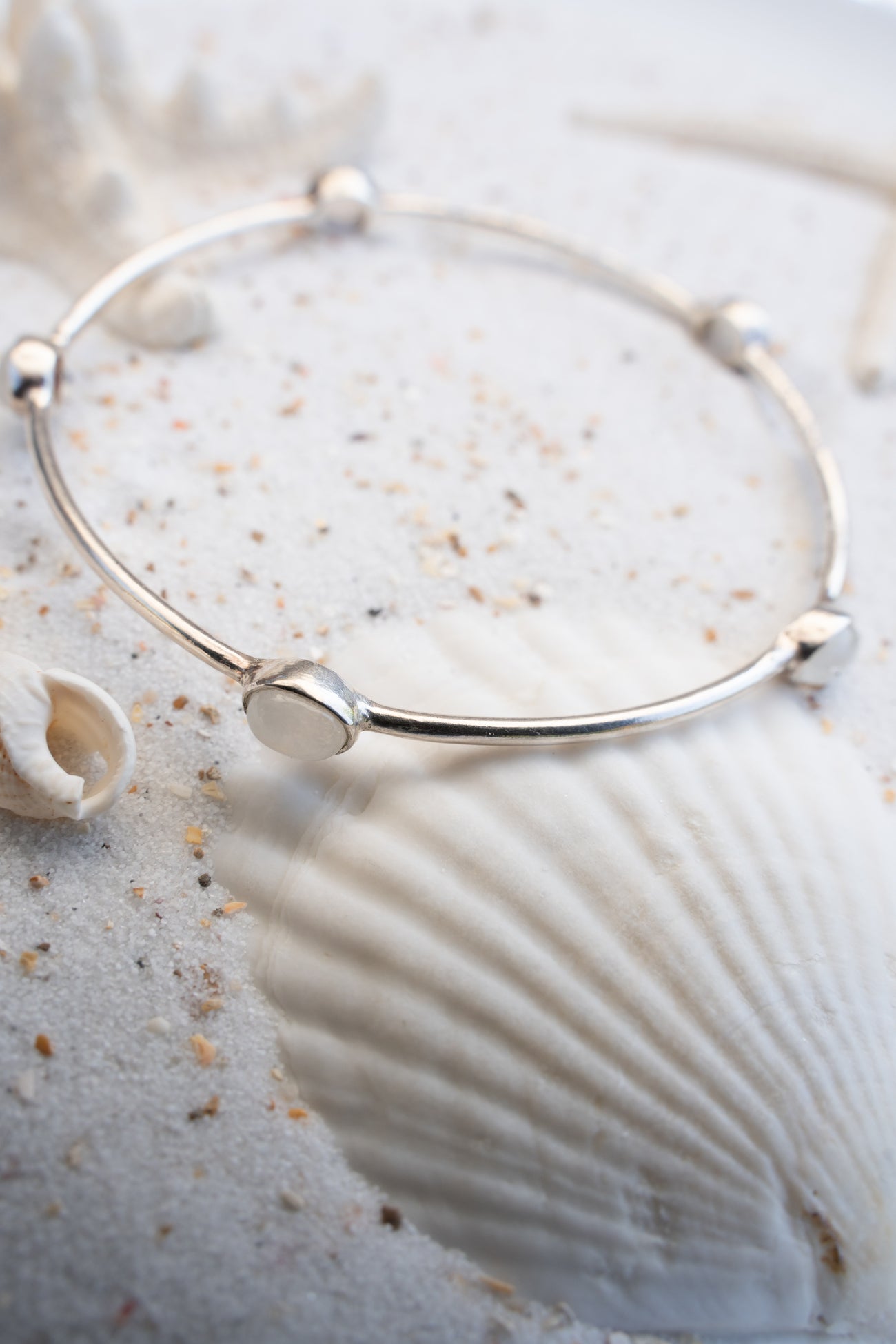 Chcete doplněk, který dodá vašemu stylu decentní šmrnc a jemnost? Bangle Bracelet Dots – Silver White je křehký, a přesto plný charakteru — šperk jako dotek světla na zápěstí.