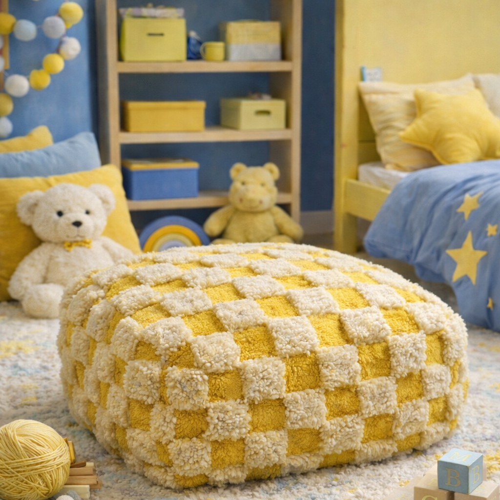 Vlněný puf kostka žlutá