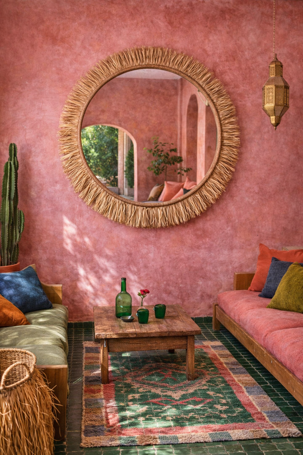 Toto zrcadlo není jen praktickým doplňkem, ale také výrazným dekorativním prvkem, který opticky zvětší a prosvětlí každý interiér. Hodí se jak do moderních, tak rustikálních i boho interiérů – perfektní nad pohovku, do vstupní haly, ložnice nebo jako dominanta obývacího pokoje.